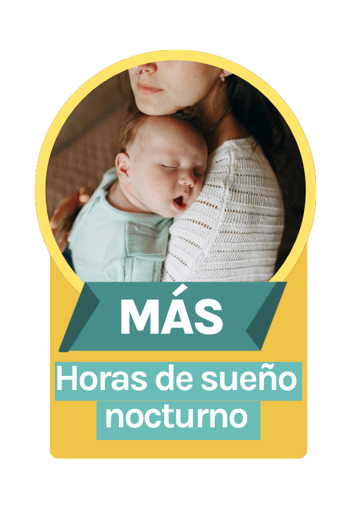 ✅ Tu bebé empezó a dormir tramos más largos en la noche y sus siestas son más largas.